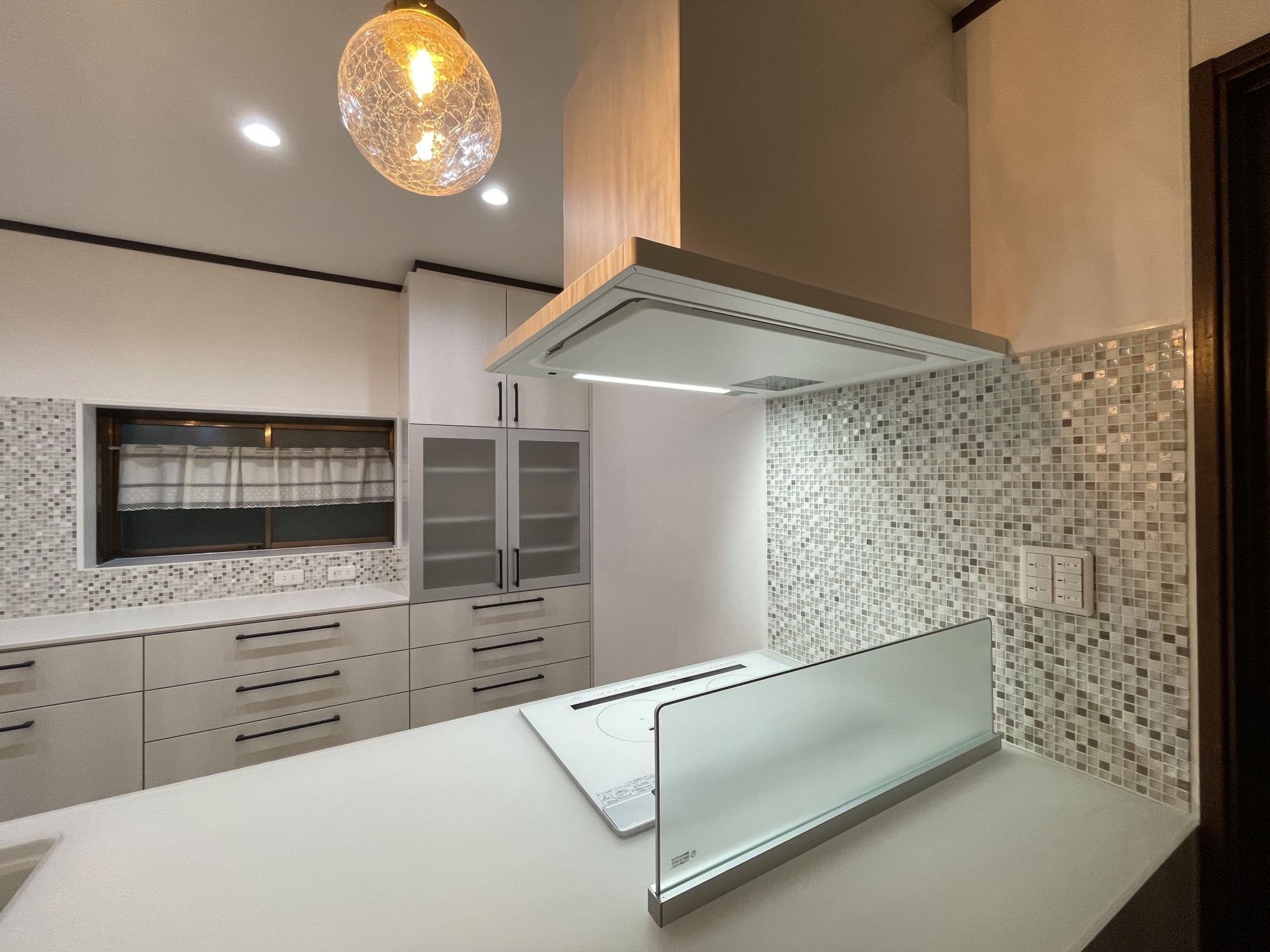 キッチンを対面化することで、リビング空間との一体感が生まれます。家族や友人とのコミュニケーションが円滑になり、日常生活がより楽しくなるでしょう。さらに、キッチン対面化により、空間全体が明るく広々とした印象を与える効果が期待できます。モザイクタイルなどを取り入れてアクセント使いすることで、よりオシャレで開放感のある空間を演出することができます。